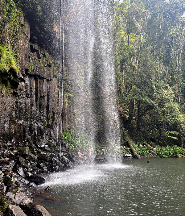 Cairns Waterfalls Tour. Seriously Beautiful Waterfalls. Meaningful Connections With Traditional Owners. An amazing day filled with adventure, while exploring some of Australia’s most famous waterfalls and the beautiful rainforest of the Atherton Tablelands and Wooroonooran National Park. This is the perfect way to celebrate the amazing natural beauty of this destination and immerse yourself – literally – in rainforest waters and crater lakes. Spend the day cruising through a landscape that represents Australia’s natural origins, the lush green rainforests of the Wet Tropics World Heritage Area, with an abundance of rivers and cascading waterfalls. Connect with Traditional Owners, proud descendants of the Yidinji and Mbabaram peoples, to learn more about their rainforest culture at the magnificent Cathedral Fig Tree. Our Cairns waterfalls tour delivers spectacular scenic vistas, a landscape of rugged mountains, steep ravines, winding rivers, ancient trees and not to mention the 2 highest mountains in Queensland. You’ll travel to and from Cairns on our comfortable coaches. Pack your towel and bring your sense of adventure.